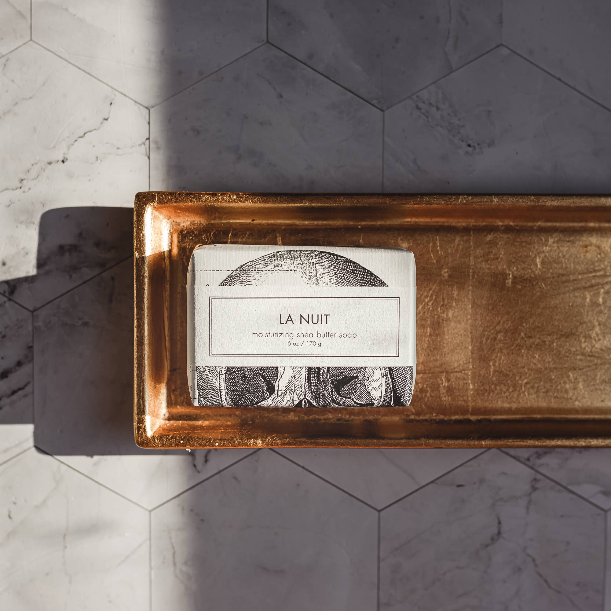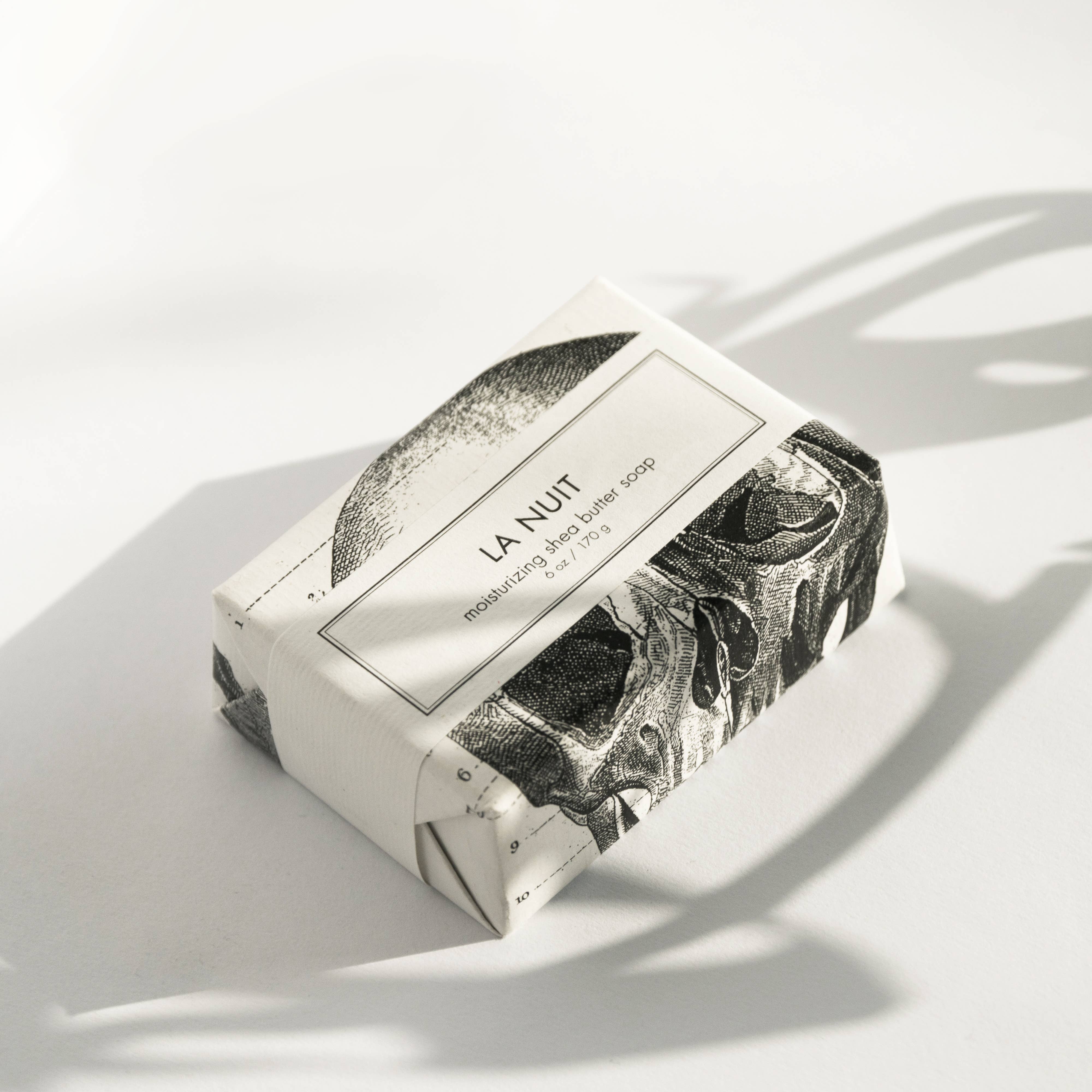 Our shea butter soap in La Nuit, is our most sexy and sultry blend. Main notes are rich and comforting amber combined with myrrh, vanilla, and Egyptian musk. We add a French Lavender to the mix to balance some of the sweetness and add a fresh floral depth.